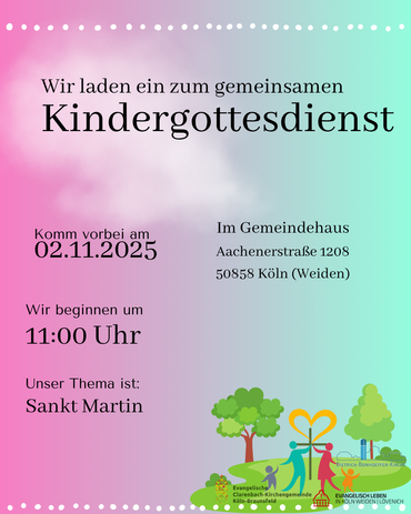 Am 2. November um 11.00 Uhr laden wir zum Kindergottesdienst bei uns in Weiden ein.