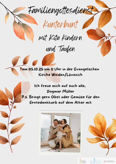 Wir feiern unseren nächsten Familiengottesdienst Kunterbunt mit Taufen mit der Kita am Sonntag, 5.10 zum Erntedank.