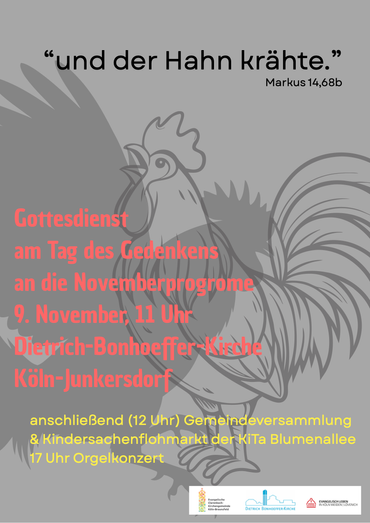 Am Sonntag, den 9. November um 11:00 Uhr laden wir herzlich zum Gedenkgottesdienst in der Kirche in Junkersdorf ein.