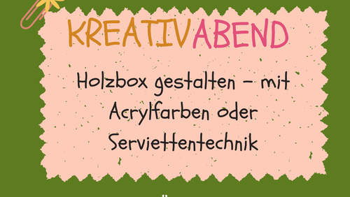 Am 17. März startet unser nächster Kreativabend! Mit Acrylfarben und Serviettentechnik wollen wir tolle Holzkisten gestalten.