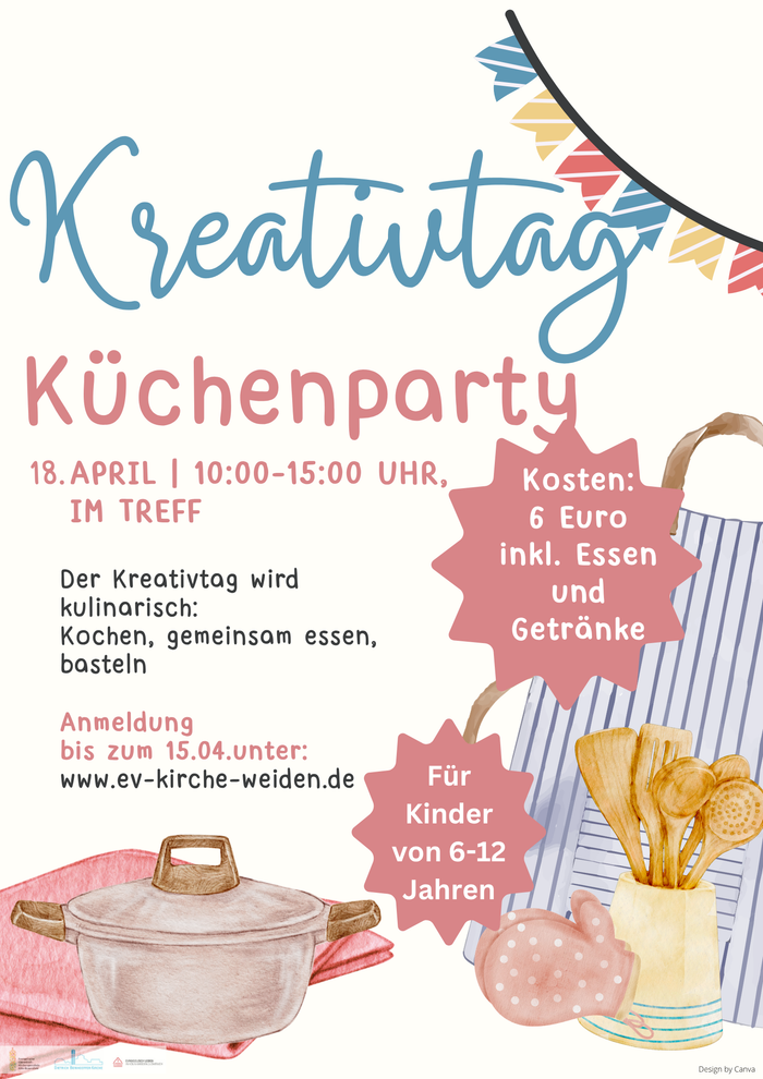 Wir laden ein zum Kreativtag Küchenparty – ein Tag voller Kochen, Basteln und Schlemmen für Kinder von 6 bis 12 Jahren. Gemeinsam wird gerührt, geknetet, dekoriert und natürlich genascht. Sei dabei – wir freuen uns auf dich! Hier kannst du dich anmelden!
