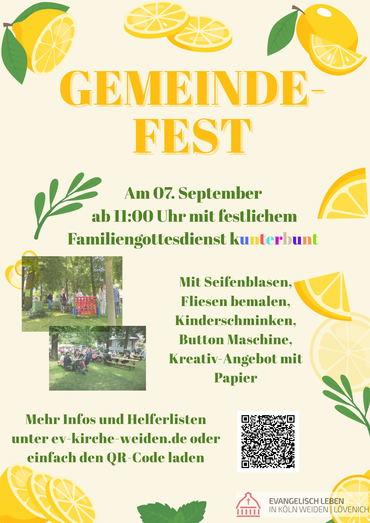 Gemeindefest am 7. September - Wir freuen uns auf Euch! Helft doch mit!